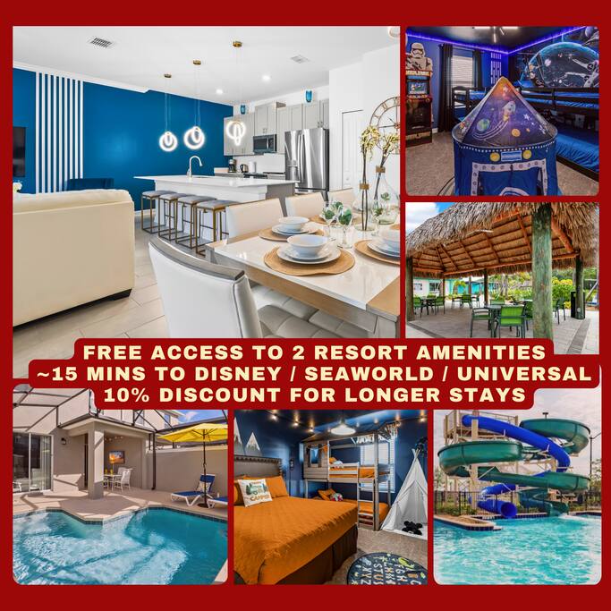 Welcome to your 4-bedroom, 3-bathroom resort-style Dream Vacation Home ! šļø Sleeps up to 11 guests ā ideal for families, friend groups, or multi-generational getaways š° Located in the prestigious Storey Lake Resort community, just 10ā15 minutes from: ⢠Disney Parks (Epcot, Magic Kingdom, Animal Kingdom, Hollywood Studios) ⢠Universal Studios ⢠SeaWorld ⢠Shopping, dining, and entertainment galore!